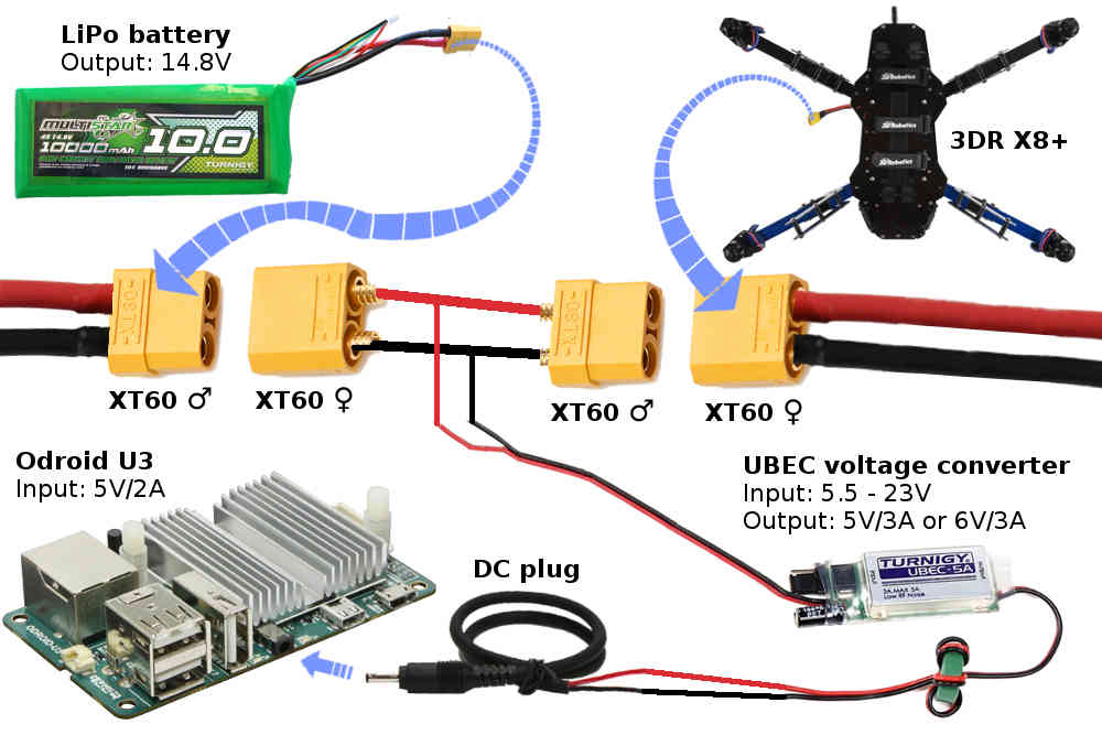 本页介绍了如何连接和配置 ODROID U3 (已停产) , ODROID-C1+ 或 ORDOID-XU4 使其能够通过串行连接使用 MAVLink 协议与 Pixhawk 飞行控制器通信。其功能与 树莓派 只不过 ODroid 的 CPU 速度更快(性能大约是 RPi 的 10 倍)。