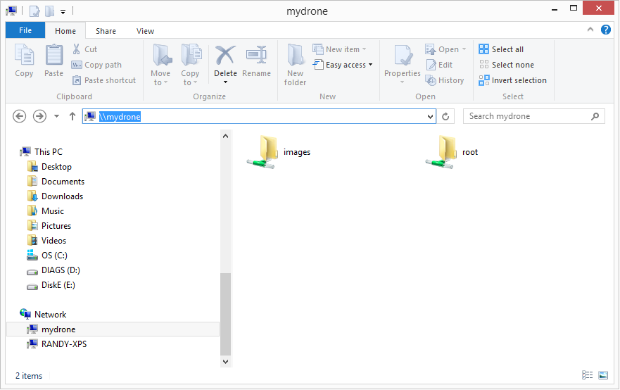 打开文件资源管理器,在地址栏中输入 (\mydrone),Odroid 图像目录的内容就会出现。