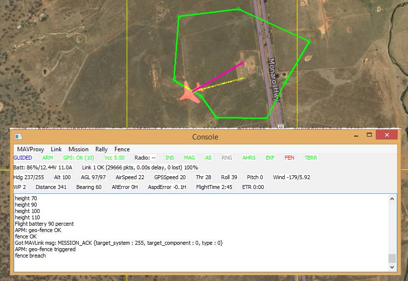 MAVProxy:控制台和地图上显示栅栏缺口¶