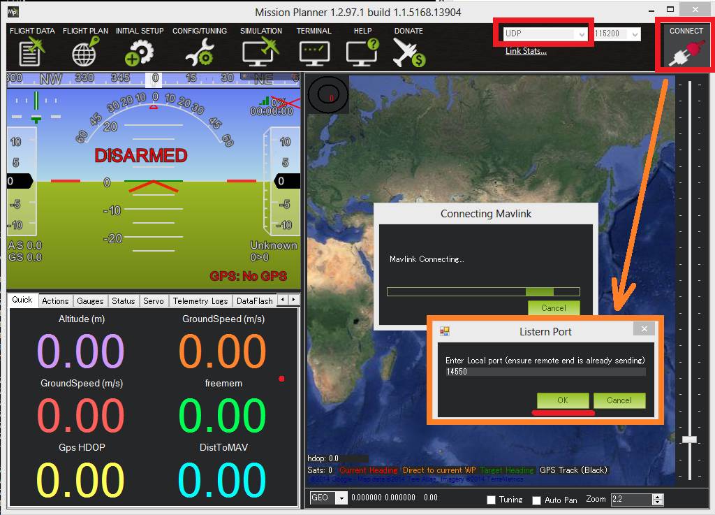 主要是指添加一个 --退出 <ipaddress>:14550 到 MAVProxy 启动命令,其中的是运行Mission Planner地面站的电脑地址。在 Windows 系统中 ipconfig 可以用来确定 IP 地址。在用来编写本维基页面的计算机上,MAVProxy 命令变成了:
