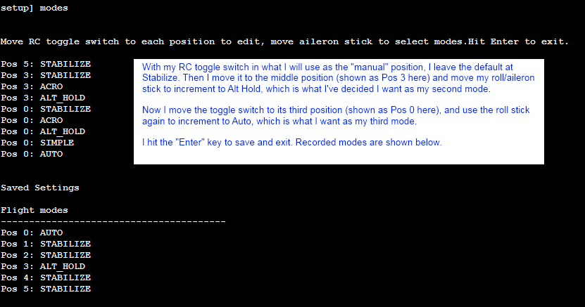 如果不想使用Mission Planner地面站,可以使用 CLI(命令行界面)设置飞行模式