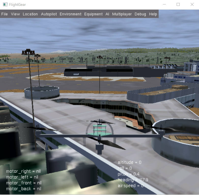 开发人员可以选择安装 FlightGear 飞行模拟器 并使用它(仅在视图模式下)显示飞行器及其周围环境的 3D 模拟。这比二维地图和 HUD 飞行显示屏提供的可视化效果要好得多。 MAVProxy 和 Mission Planner地面站.