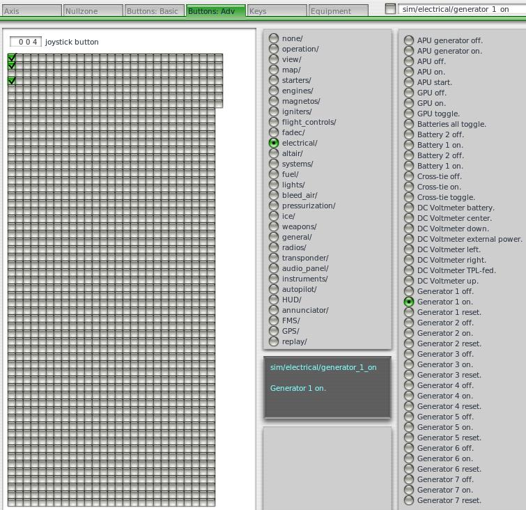 您需要映射一个钥匙或操纵杆按钮来开启和关闭 "发电机/燃料电池1 "电气系统