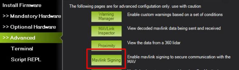 要为 MissionPlanner 设置支持代理端口,您需要使用高级->Mavlink 签名工具:
