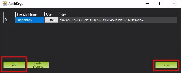 使用 "添加 "按钮添加密钥,使用 "保存 "按钮保存密钥。