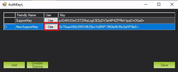 按 "使用 "键将更新您的支持 ID 的签名密钥。