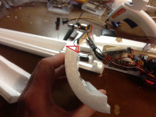 我将 GPS/指南针安装在右翼上,只去掉了一小部分材料。