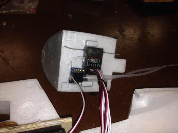 为了给电池腾出空间,我将空速传感器板和接收器安装到了舱盖舱门的底部:
