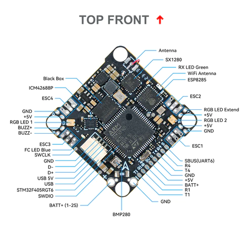 BETAFPV F4 1S 12A AIO V3 是一款适用于 1-2S 微型四旋翼飞行器的小型(飞行)控制器,集成了 12A (峰值 25A)电调和 ELRS 接收器。