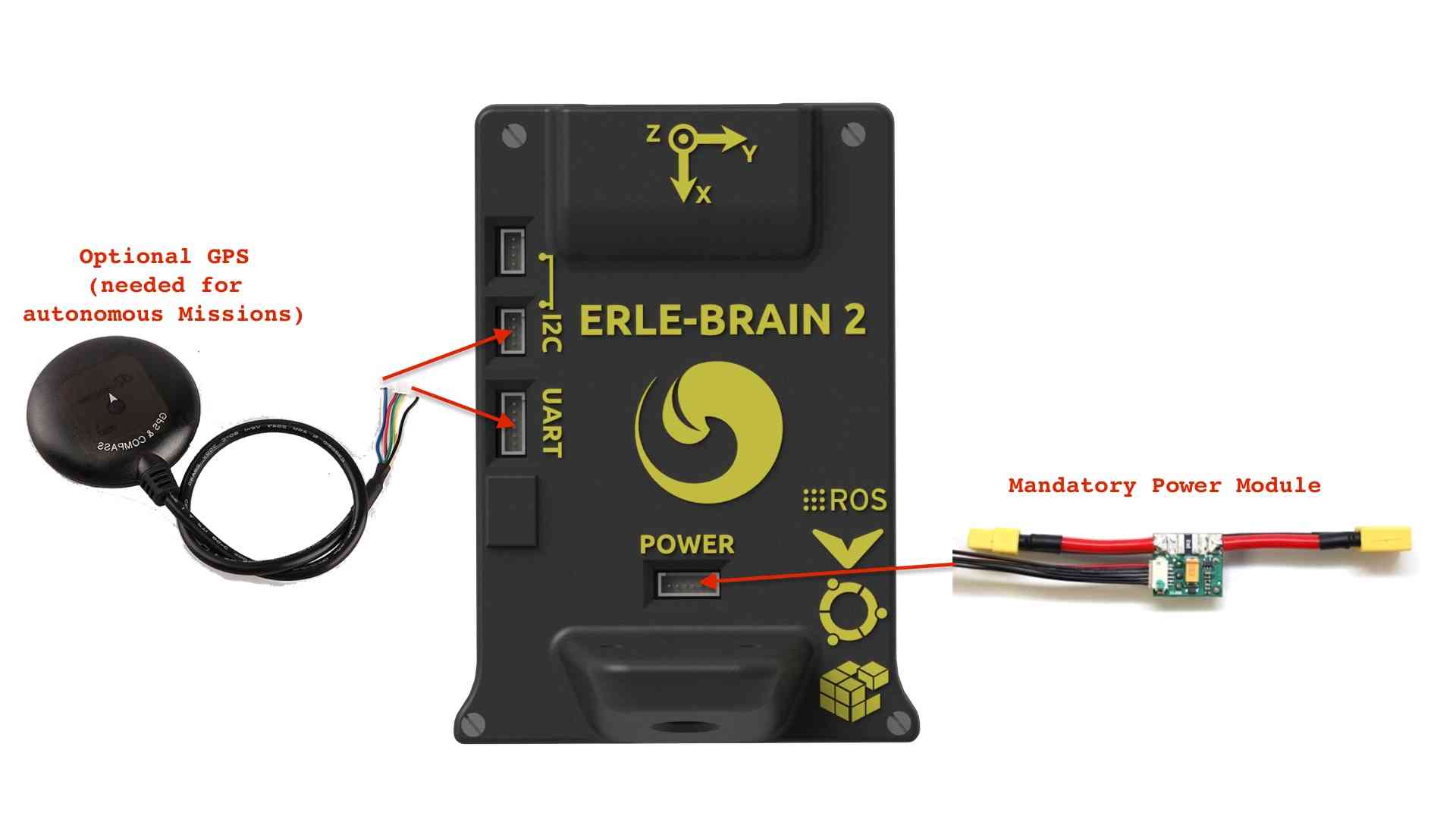在无人机飞行时,始终使用电源模块为 Erle-Brain2 供电