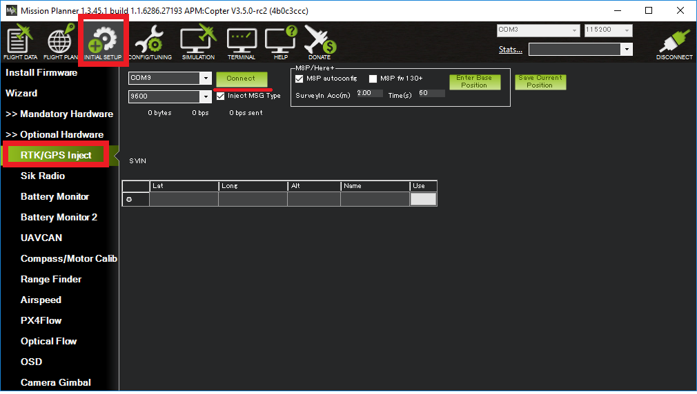 打开初始设置 >>可选硬件 >>RTK GPS 注入屏幕