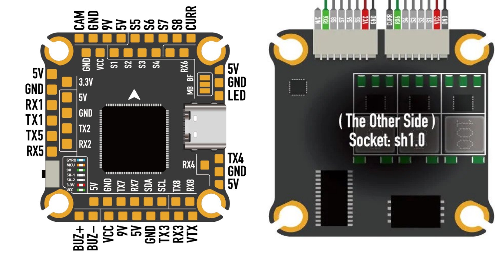 电路板没有内置电流传感器。电压传感器最多可处理 6S 锂聚合物电池。