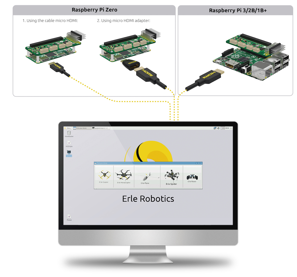 - 如果您希望直接在基于 Linux 的(飞行)控制器上工作,可以使用 HDMI 连接器