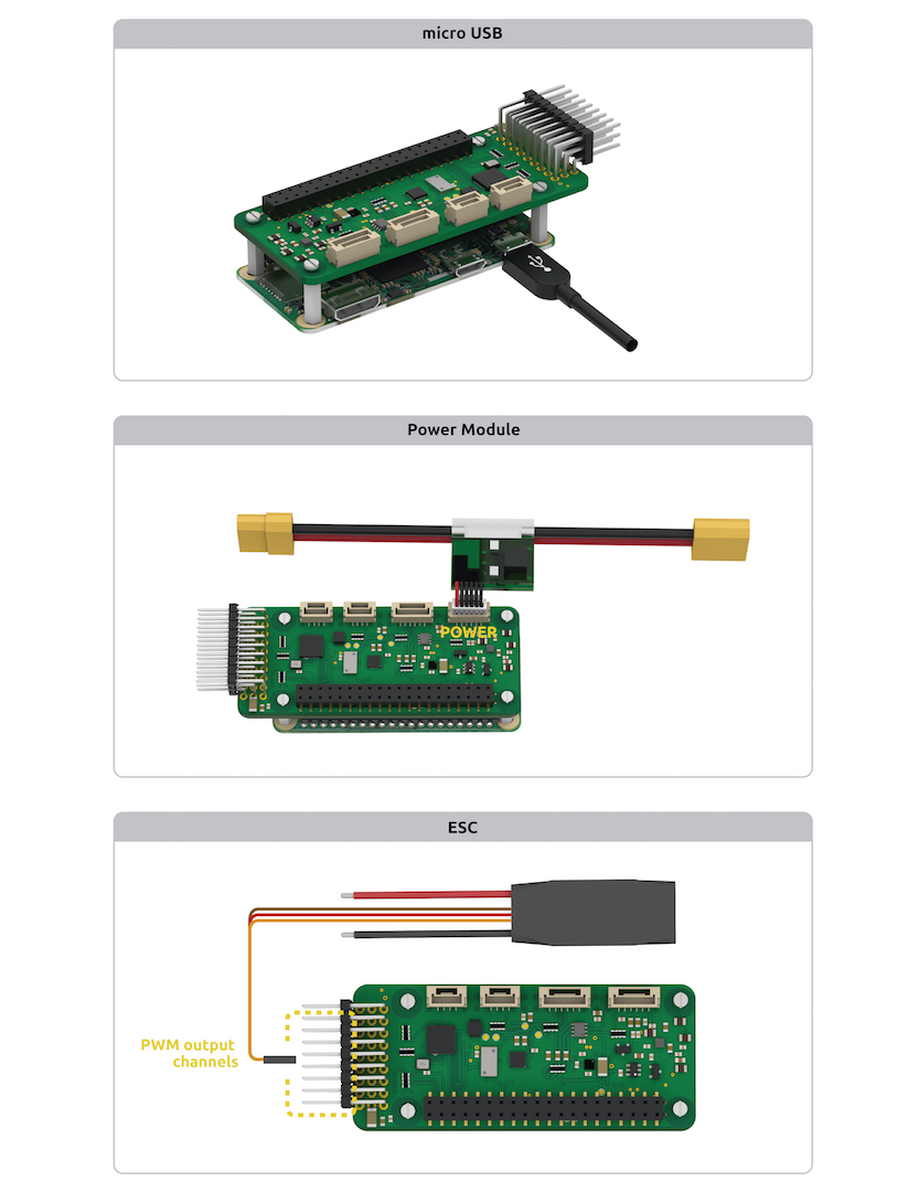 本文提供了有关如何为以下设备供电的高级信息 PXFmini 并连接其最重要的外设。