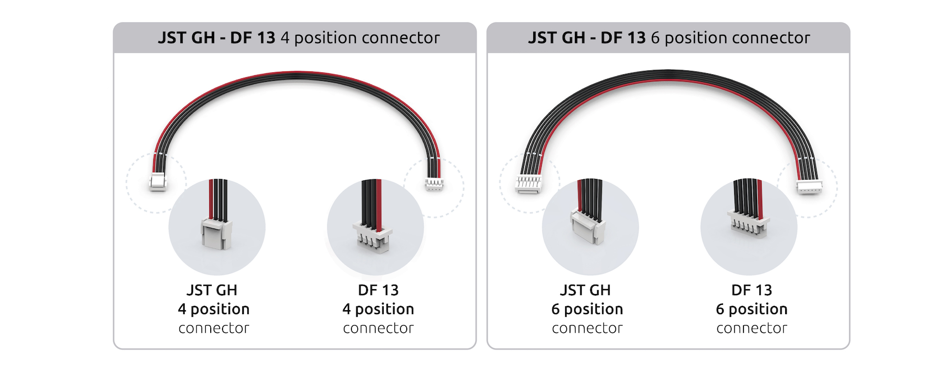 PXFmini 使用 JST-GH 连接器而不是 DF13。这是 DroneCode 基金会最新采用的连接器。