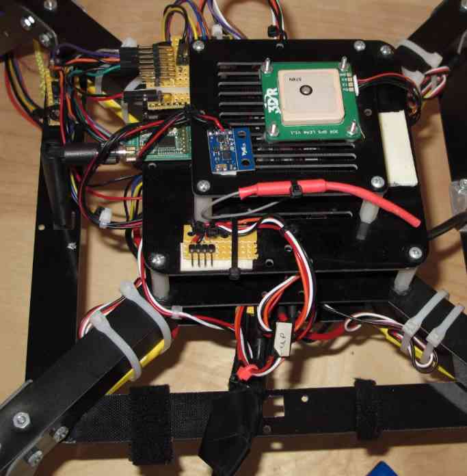 连接器末端的黑线(接地)连接罗盘板上的接地焊盘。这根线最靠近 APM 2.5 电路板的边缘。