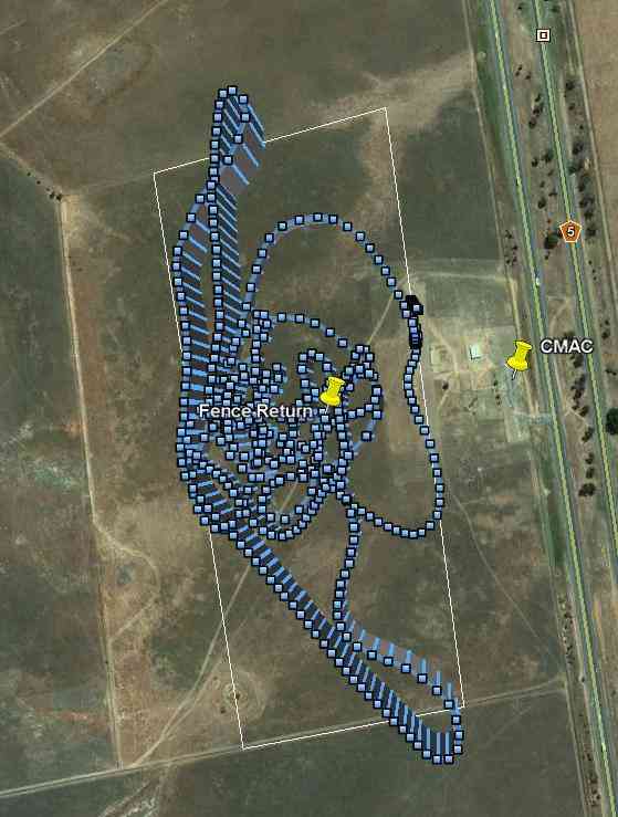 这是我在当地飞行俱乐部驾驶 !SkyWalker 时启用地理围栏后的飞行轨迹。白线表示地理围栏的边界,另外您还可以看到中间的返航点。您还可以看到飞机在北面、西面和南面突破地理围栏的点。此外,还有许多高度突破,因为我想通过这次飞行来提高我在 MANUAL 模式下的倒立飞行技能。如果没有地理围栏,飞机是不可能存活下来的!