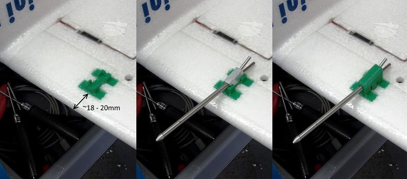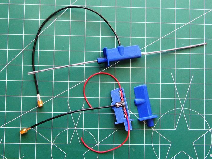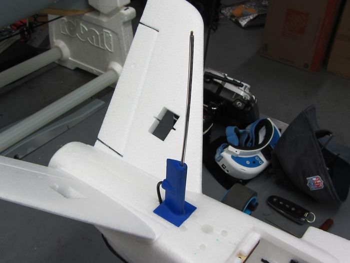 如果使用 LRS(远距离遥控系统),天线的安装对于实现最大距离至关重要。大多数 LRS 系统使用偶极子。下图是一个 3d 打印的支架,可以确保两个元件都是垂直的。任何能确保偶极子垂直安装的方法都能令人满意。