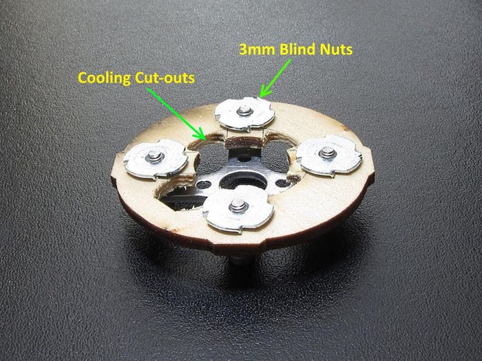 在粘合机身两半之前,用 APC 螺旋桨衬套和 3 毫米盲螺母安装马达固定板,使马达离开木头,以便更好地冷却。