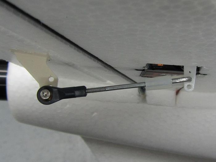 它提供直推杆到 Vtail 表面。但是,由于原车的几何形状导致连杆与控制面成一定角度,因此存在较大的偏差。不过,为了减少应变和任何可能的磨损,您可以使用下图所示的球形连杆。