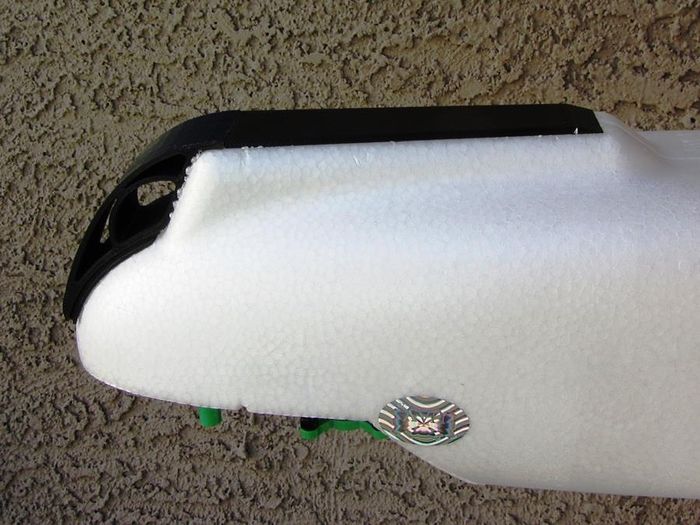 粘合 EPO 泡沫时,可使用 Beacon Foam-Tac 或 E6000,效果非常好,而且凝固速度相当快。准备时,一定要用热水和少量洗洁精清洗所有部件的表面,以去除脱模剂。然后用变性酒精擦拭,最后用 100 号砂纸轻轻打磨胶水表面。