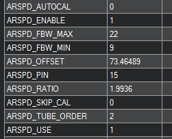 将参数设置为 65,并循环(飞行)控制器电源以确保 I2C 航速正确初始化。检查空速显示屏上是否有正常的 1-3 m/s 噪音。
