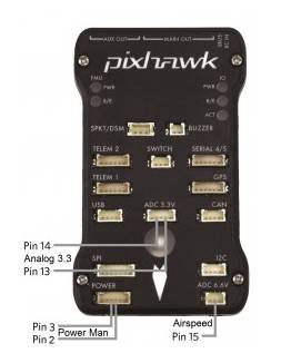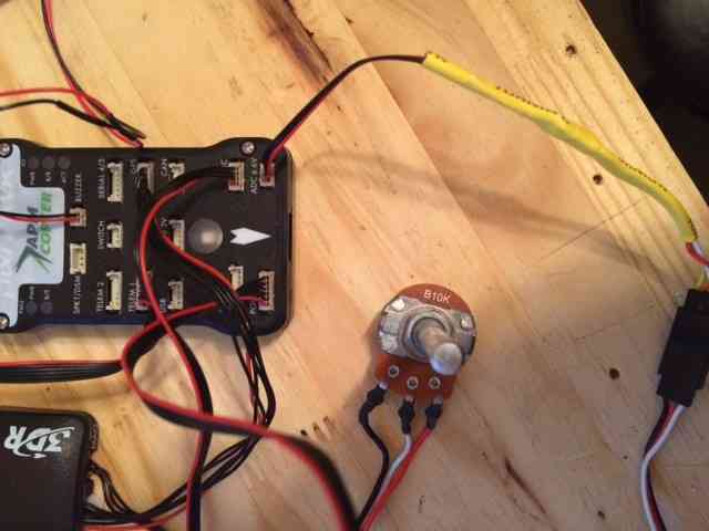 为此,您必须向模拟输入引脚施加电压,该引脚被指定为模拟空速输入引脚。在 Pixhawk 上,您可以将电位计插入 ADC 6.6v(针脚 15)或 ADC 3.3v(针脚 11)。如果您使用的是 I2C 气种子 传感器,将(飞行)控制器临时配置为使用模拟端口。