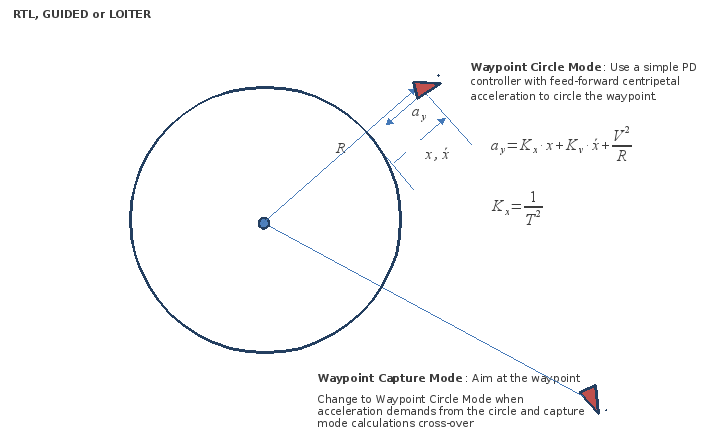 对 RTL、GUIDED 和 LOITER 模式中使用的航点圆跟踪算法进行了修改,以使用修改后的 PD 控制律,而不是 L1 控制律。这样做是必要的,因为这样可以使较小的闲置半径与较大的 NAVL1_PERIOD.