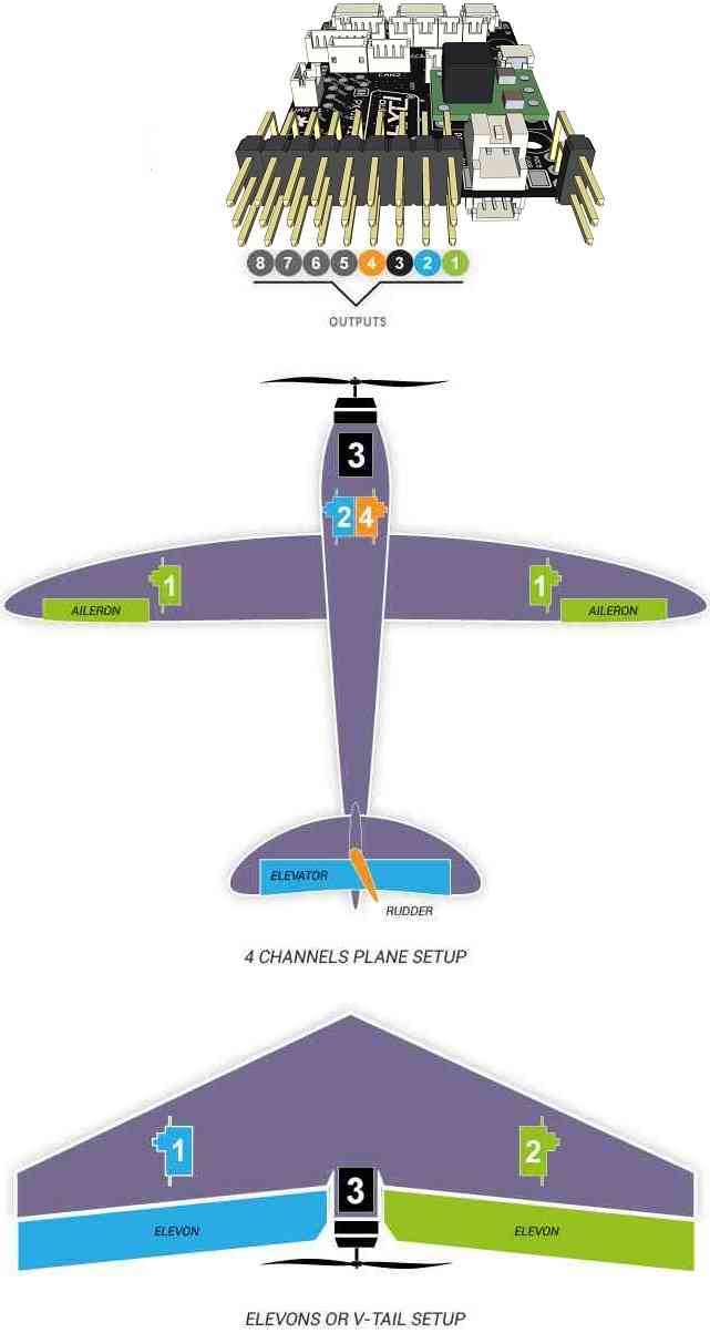 您可以将电调/舵机信号线连接到一个内嵌式连接器中,该连接器的针脚数量与您的飞机相符。