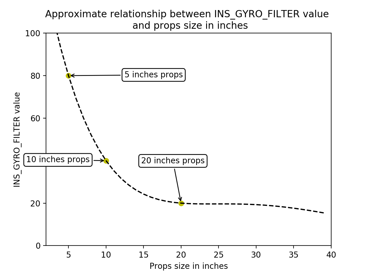 ins_gyro_filter:5 英寸螺旋桨 80 赫兹,10 英寸螺旋桨 40 赫兹,20 英寸螺旋桨 20 赫兹
