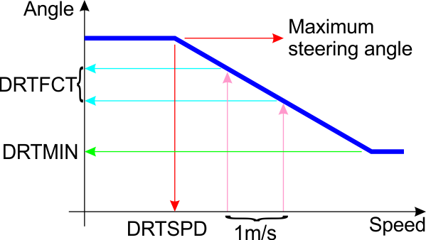 DRTFCT - 速度每增加 1 米/秒减少的度数