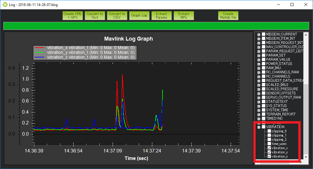 Tlog 的振动 振动_x, 振动 y 和 振动 也可以使用,并显示与数据闪存日志中存储的相同信息