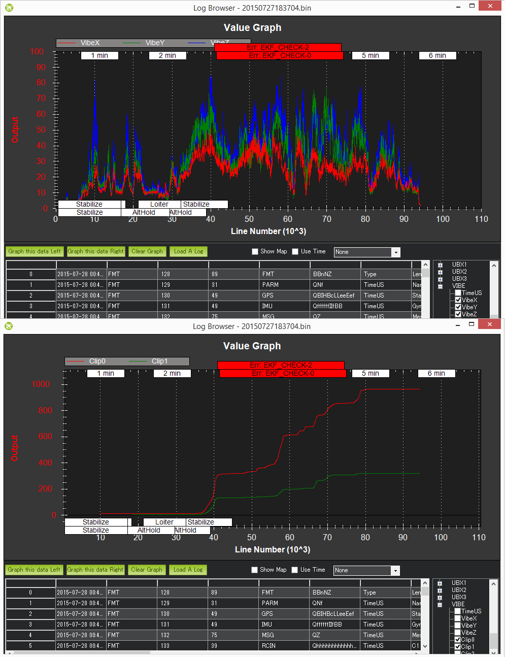 查看日志中的振动时,首先要看削波。如果削波为 0,则说明情况良好。这意味着检测到的振动没有压垮 IMU。