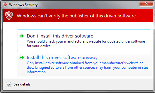 如果收到下图所示的警告,请选择 无论如何都要安装该驱动程序软件 继续。