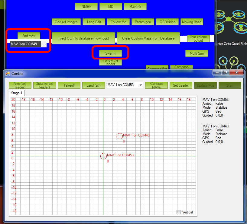 Mission Planner地面站:带有蜂群按钮的屏幕¶