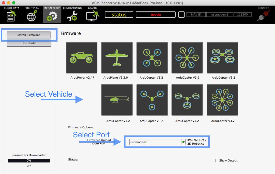 本文介绍如何使用 APM Planner 2 使用最新的 APM 固件对(飞行)控制器进行编程。