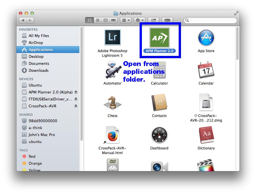 打开应用程序文件夹,然后打开 APM Planner。