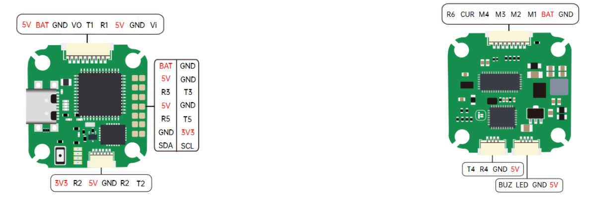 该(飞行)控制器没有内置指南针,但可以通过 SDA 和 SCL 焊盘上的 I2C 连接外部指南针。