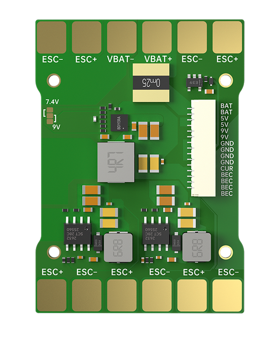 电路板内置电压传感器和电流传感器。电压传感器最多可处理 8S 锂聚合物电池。