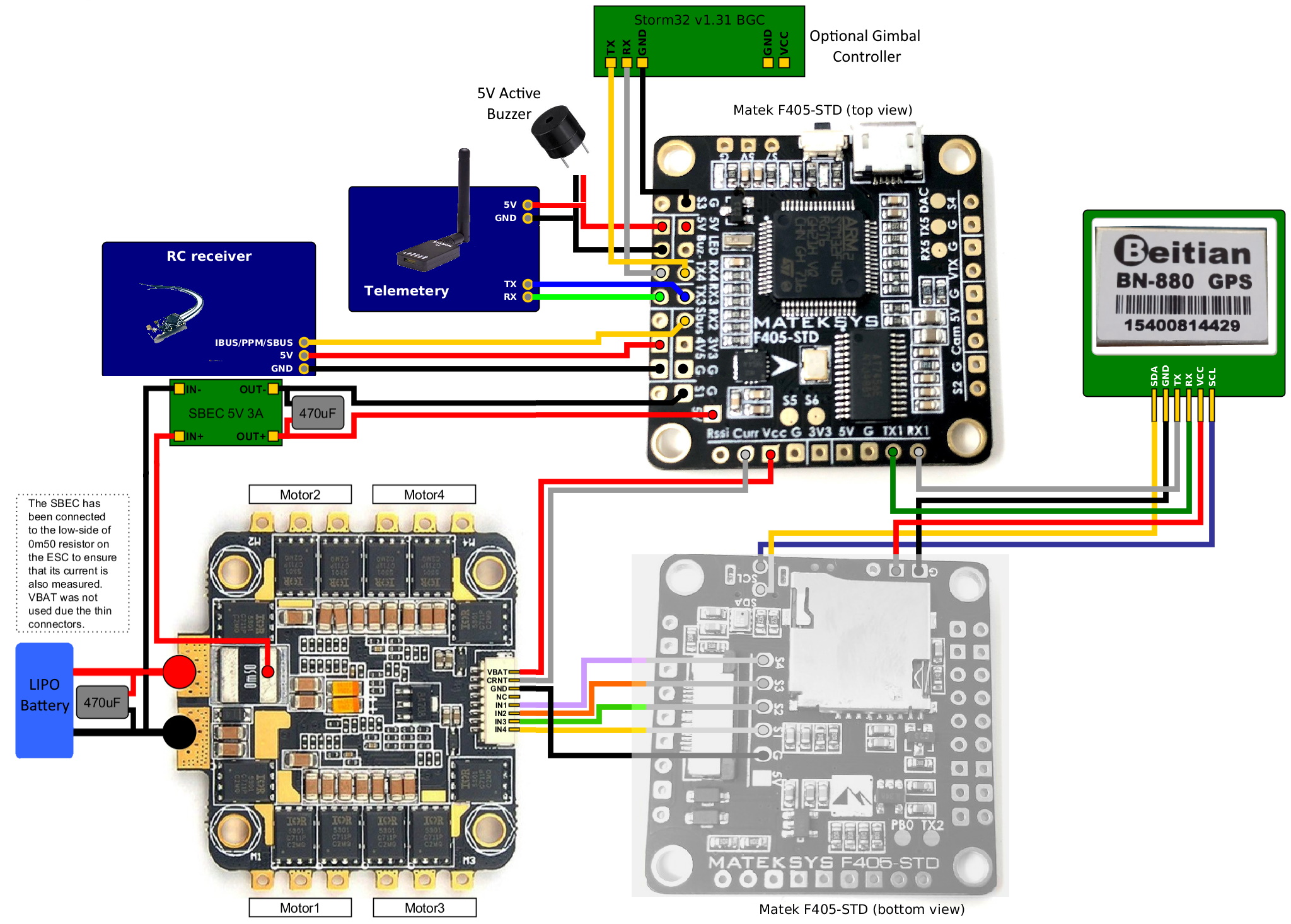 对于 -STD 版本,请使用 MatekF405-STD 类型的固件。对于带 MPU6000 的 -CTR 版本,请使用 MatekF405 型固件。对于 MatekF405-Wing 请使用专用固件。请注意,ArduPilot 默认不支持 -AIO 和 -OSD 版本,因为需要进行额外的硬件和/或软件调整。