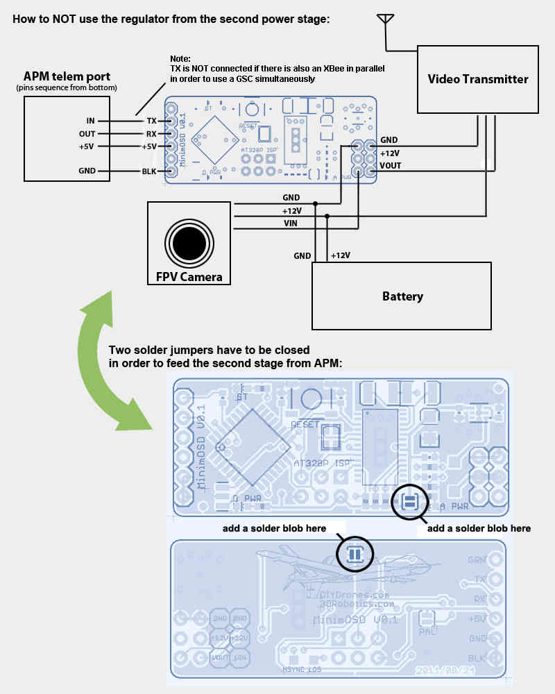 下面是 MinimOSD 电路板采用两级方法的基本图: