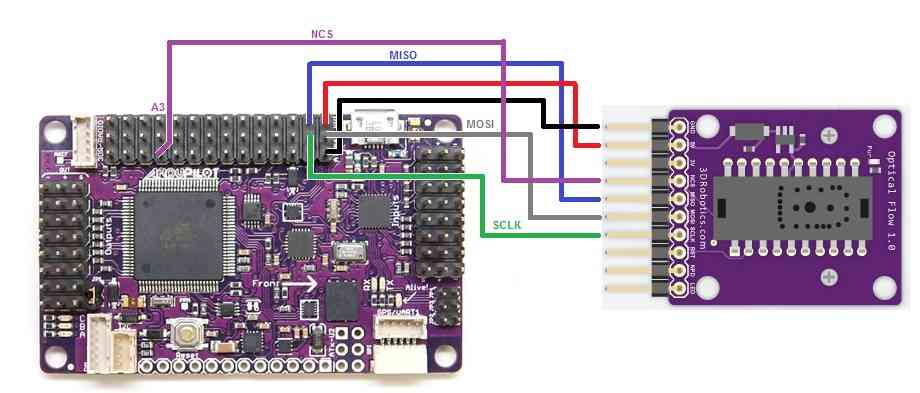 APM2.x 板上的 Copter-3.2.1 包含对基于鼠标传感器的有限支持。 光学流量传感器 飞行模式。