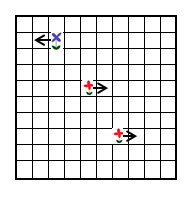 鼠标传感器会返回它所看到的表面特征的平均移动量(x 和 y 方向)。单个像素的移动不会导致传感器返回 "1"。它将返回一个 5 左右的较高值。这个值被称为 定标器 如下所示。在下面的示例中,返回值约为 1.6 ( (-5+5+5) / 3)