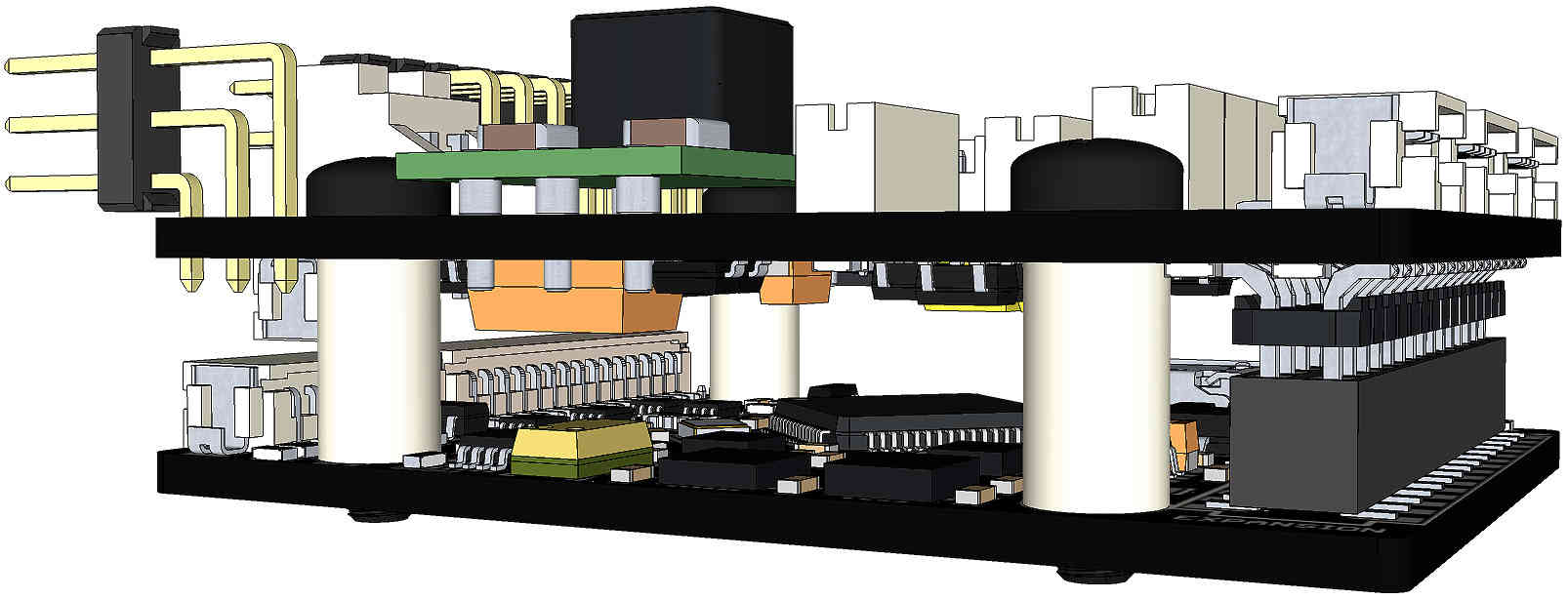对于大功率舵机,可以移除 L1,以便从外部电源向舵机连接器中心引脚供电。