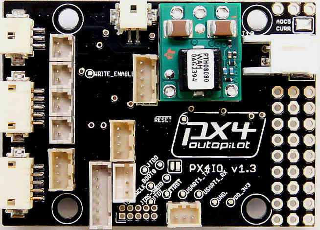 PX4-IO 板包含自己的板载微控制器,并与 PX4-FMU 板堆叠。