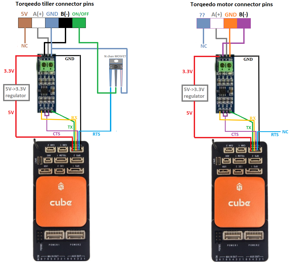 Rover-4.2.0(及更高版本)支持控制单个 Torqeedo 旅行, 超轻型 或 巡航 电机使用其定制的 RS485 协议。