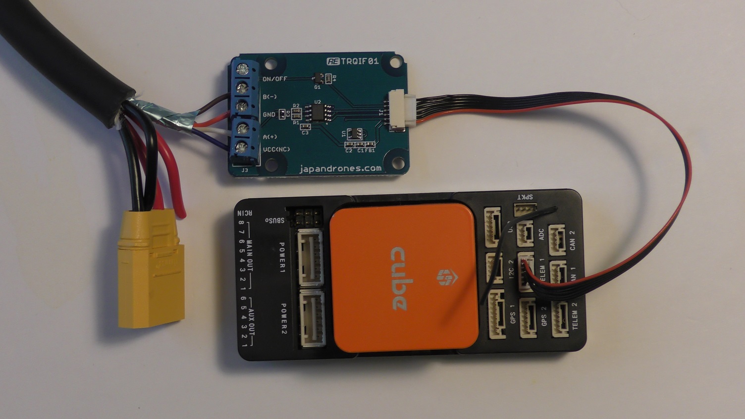 TRQD_ONOFF_PIN= 54 (AUX5),将(飞行)控制器的 AUX5 引脚连接至接口板的 MOSFETTRQD_DE_PIN= 55 (AUX6),将(飞行)控制器的 AUX6 引脚连接至 RS485<->TTL 转换器的 DE 和 RE 引脚