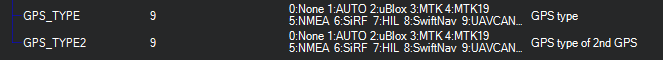 如果有 DroneCAN GPS 设备,则必须在 全球定位系统 参数子组。参数 类型 参数应设置为 9,用于(飞行)控制器中相应的 GPS 接收机。