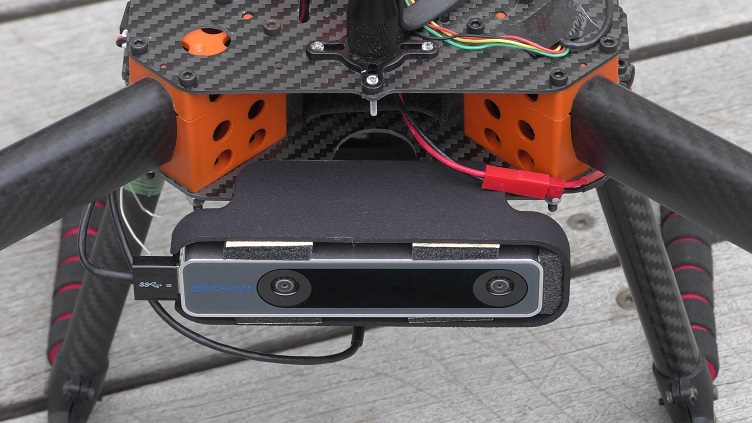 • 将英特尔 RealSense T265 安装在载具上,面向前方(有关其他方向的信息,请参阅下文),使用厚双面胶带或其他工具。 大卫-萨斯特雷的 T265 坐骑 以更好地隔离相机的震动