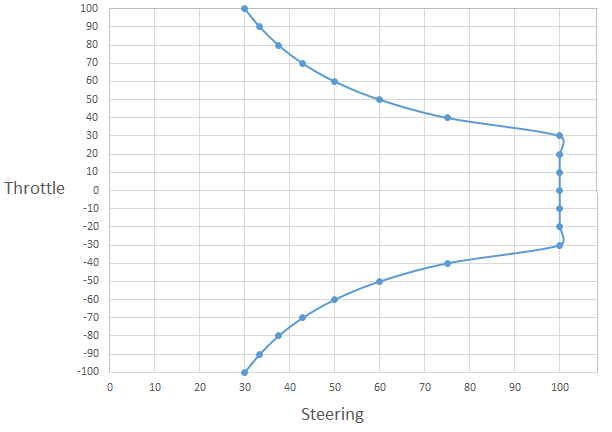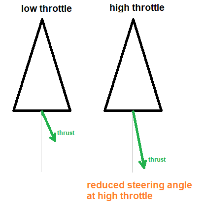 下面的粗略图像显示了转向伺服器的角度必须随着油门的增大而减小,才能获得理想的转向响应。
